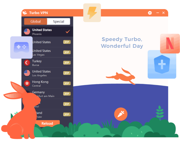 Fake your Tinder location is pretty easy: you could change your server to any location you want to reach by using Turbo VPN. Start a relationship you like on Tinder securely.